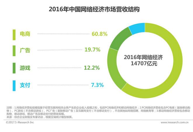 網(wǎng)絡(luò)經(jīng)濟(jì)營(yíng)收規(guī)模穩(wěn)健增長(zhǎng),2016年達(dá)14707億元