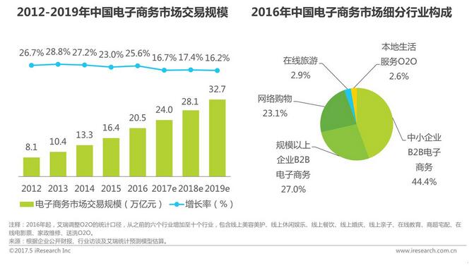 2016年中國(guó)電商市場(chǎng)交易規(guī)模超20萬(wàn)億,增速略有上升