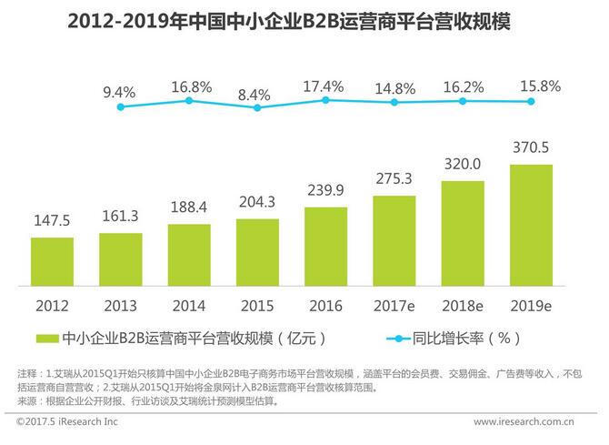 2016年中國(guó)電商B2B行業(yè)市場(chǎng)規(guī)模,中小企業(yè)增長(zhǎng)17.4%