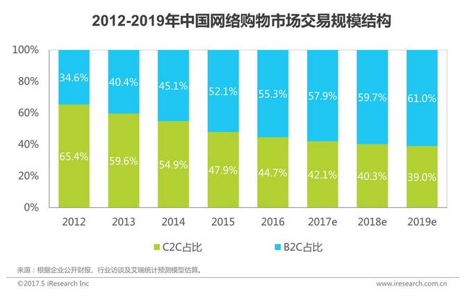 艾瑞咨詢的研究數(shù)據(jù)顯示,2016年中國(guó)網(wǎng)絡(luò)購(gòu)物市場(chǎng)中B2C市場(chǎng)交易規(guī)模為2.6萬(wàn)億元,在中國(guó)整體網(wǎng)絡(luò)購(gòu)物市場(chǎng)交易規(guī)模中的占比達(dá)到55.3%,較2015年提高3.2個(gè)百分點(diǎn);從增速來(lái)看,2016年B2C網(wǎng)絡(luò)購(gòu)物市場(chǎng)增長(zhǎng)32.4%,遠(yuǎn)超C2C市場(chǎng)16.4%的增速。