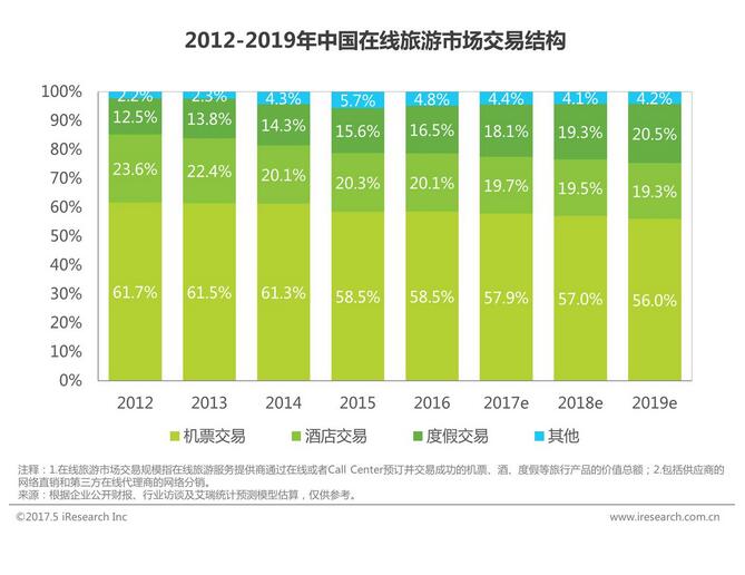 在線旅游行業(yè)交易結(jié)構(gòu),機(jī)票市場(chǎng)占比最大,度假市場(chǎng)持續(xù)增長(zhǎng)