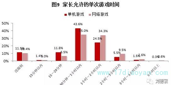 從單次游戲時(shí)間上來(lái)看,大多數(shù)家長(zhǎng)允許的游戲時(shí)間是每次2小時(shí)以內(nèi)。與家長(zhǎng)認(rèn)為的玩游戲1-2小時(shí)算是正常的看法基本一致。綜合而言,大多數(shù)家長(zhǎng)允許子女在周六日或者長(zhǎng)假期玩游戲,單次的游戲時(shí)間通常是2小時(shí)以內(nèi)。