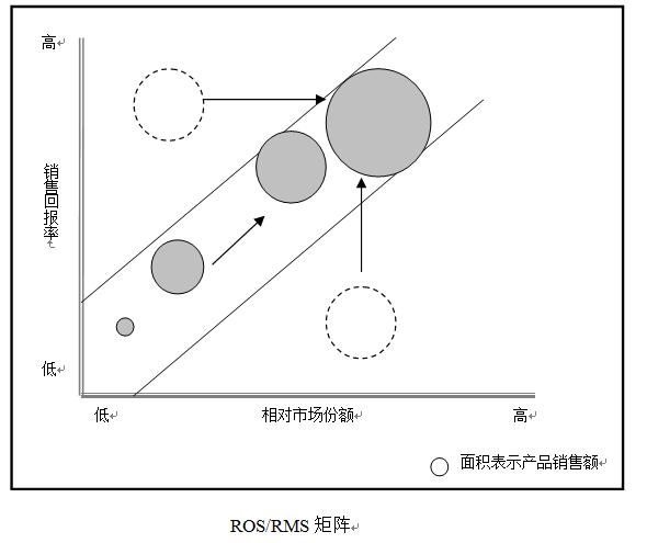 ROS/RMS(Return Of Sales/Relative Market Share)矩陣也稱做銷售回報(bào)和相對(duì)市場(chǎng)份額矩陣,主要是用來分析企業(yè)的不同業(yè)務(wù)單元或產(chǎn)品的發(fā)展戰(zhàn)略。這個(gè)模型認(rèn)為,企業(yè)某個(gè)業(yè)務(wù)單元或產(chǎn)品在市場(chǎng)上的銷售額應(yīng)該與其在市場(chǎng)中的相對(duì)份額成正比,并且該業(yè)務(wù)單元或產(chǎn)品的銷售額越高,該業(yè)務(wù)單元或產(chǎn)品為企業(yè)所提供的銷售回報(bào)就應(yīng)該越高。