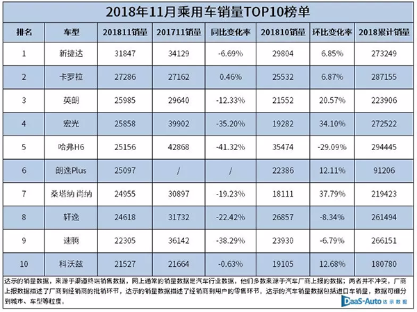 車型方面,11月銷量冠軍是新捷達(dá),連續(xù)兩個(gè)月占據(jù)著榜單首位的哈弗H6 11月下滑至第五名,雖然新捷達(dá)11月銷量與去年同期相比下滑了6.69%,但在車市并不理想的情況下,31,847輛的銷售成績(jī)還是值得肯定的,截至11月,其累計(jì)銷量為273,249輛。