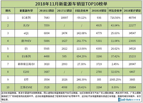 新能源車方面,11月新能源車的銷量冠軍為北汽新能源的EC系列,這是時(shí)隔六個(gè)月,經(jīng)歷了年中補(bǔ)貼新政、產(chǎn)品升級(jí)后的再次衛(wèi)冕。由于去年同期EC系列市場(chǎng)表現(xiàn)強(qiáng)勁,11月銷量同比下跌了59.12%,但環(huán)比實(shí)現(xiàn)了716.56%的增長(zhǎng),市場(chǎng)認(rèn)可度還是不錯(cuò)的。