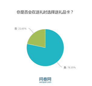 禮品卡進(jìn)入中國(guó),便在送禮行業(yè)內(nèi)刮起了一陣旋風(fēng)。實(shí)際上中國(guó)本身的禮儀文化,也推動(dòng)了禮品卡在中國(guó)的迅猛發(fā)展。不管是傳統(tǒng)節(jié)假日,還是商家促銷,員工福利等,都少不了“禮”。傳統(tǒng)送禮一般會(huì)選擇購(gòu)買實(shí)物,但是這種送禮常常會(huì)發(fā)生對(duì)方不喜歡該禮物的現(xiàn)象。而禮品卡可以完美的規(guī)避掉這種情況。收禮的人可以直接使用禮品卡在指定的平臺(tái)購(gòu)買心儀的產(chǎn)品。所以越來(lái)越多的人開始把禮品卡作為一種送禮的方式,根據(jù)問(wèn)卷網(wǎng)在網(wǎng)絡(luò)上對(duì)2030人發(fā)起的隨機(jī)抽樣調(diào)查顯示:84.64%的受訪者有使用禮品卡的習(xí)慣,78.35% 的受訪者送禮時(shí)會(huì)選擇送禮品卡。