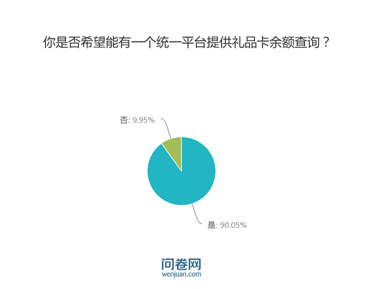 實(shí)際上根據(jù)問(wèn)卷網(wǎng)調(diào)研,有90.05%的受訪者表示希望未來(lái)可以出現(xiàn)同一查詢余額的平臺(tái). 雖然目前禮品卡行業(yè)還未形成,一平臺(tái)多卡查詢的氣候。但是“卡寶”的出現(xiàn)也預(yù)示了禮品卡行業(yè)未來(lái)的趨勢(shì),相信不久的未來(lái)消費(fèi)者就可以實(shí)現(xiàn)多卡查詢的情況。