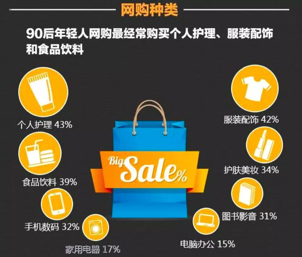 90后網(wǎng)購最經(jīng)常賣的是個人護理、服裝配飾和食品飲料!