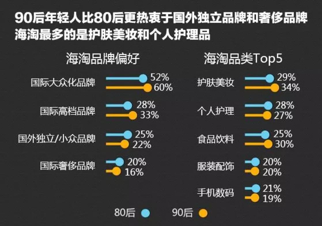 90后海淘最多的是護膚美妝,偏好國際大眾化品牌!