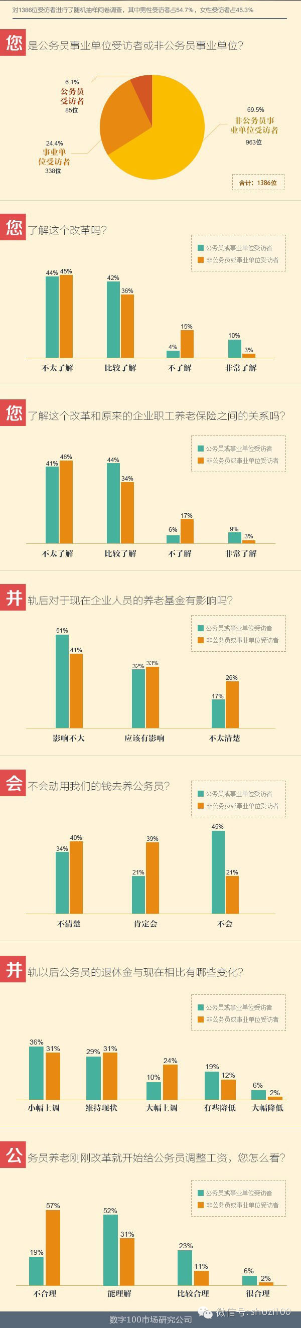 本次調(diào)查小編把受訪者分為了公務(wù)員或事業(yè)單位受訪者與非公務(wù)員或事業(yè)單位受訪者,簡單的說就是公務(wù)群體與非公務(wù)群體,如果大家對改革政策與制度感興趣,請找度娘或百科。在這里我們不關(guān)注政策本身(其實(shí)關(guān)注也沒有用,很多細(xì)則都沒有出臺。),只探討面對改革的心態(tài),看看大家是在乎還是不在乎,想了解還不想知道。